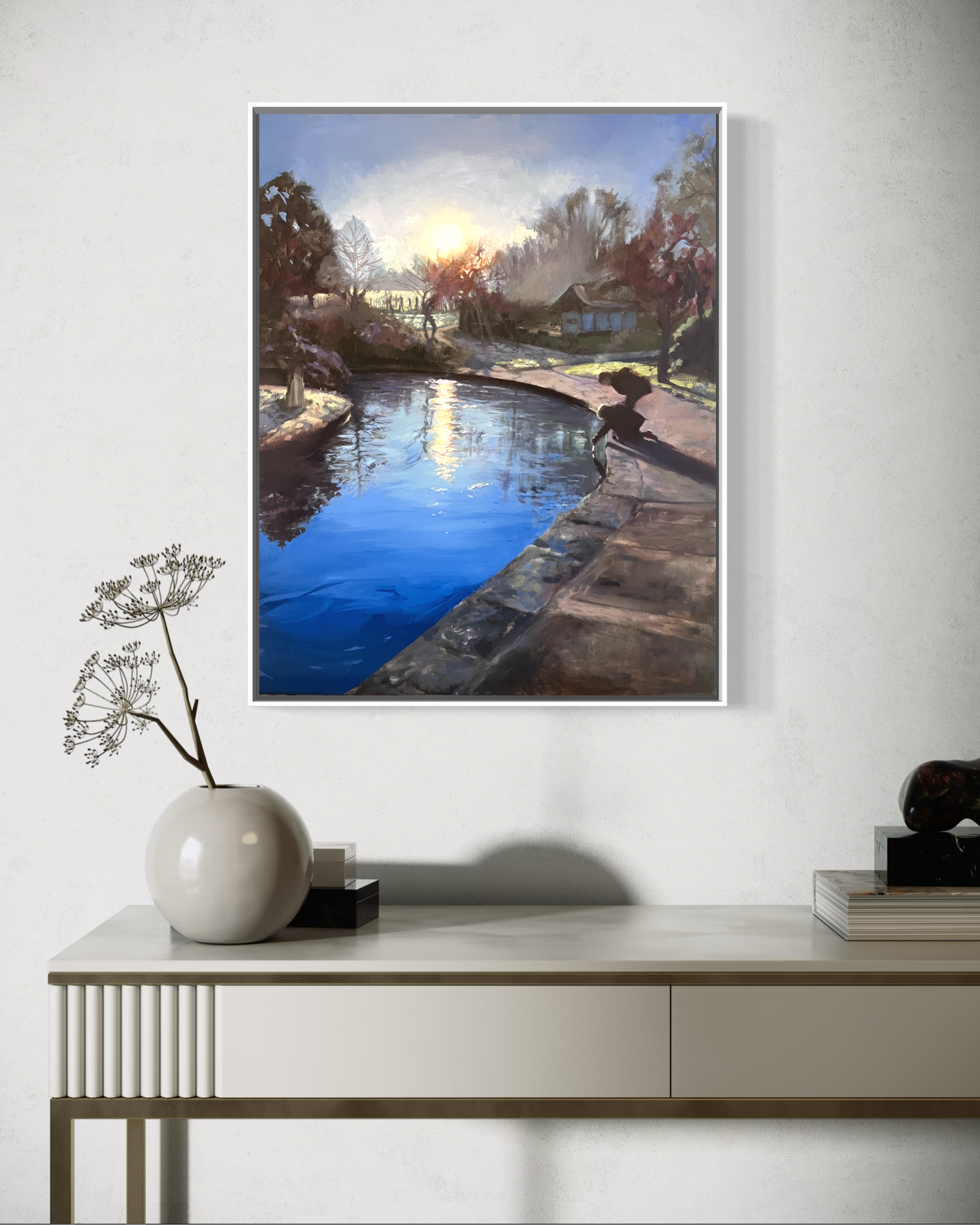 Figurative paintings capturing transient, light-filled moments of nostalgia and connection.