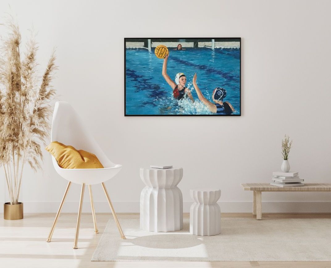 When I commissioned this painting I could not hope for anything better than the result! The painting is amazing in its style, the movement, everything. This was my daughter’s first score in waterpolo and the portrait is soooo real. Besides, working with Sonya is super easy and she makes things happen fast and well. Perfect. Thank you Sonya, you’re amazing!