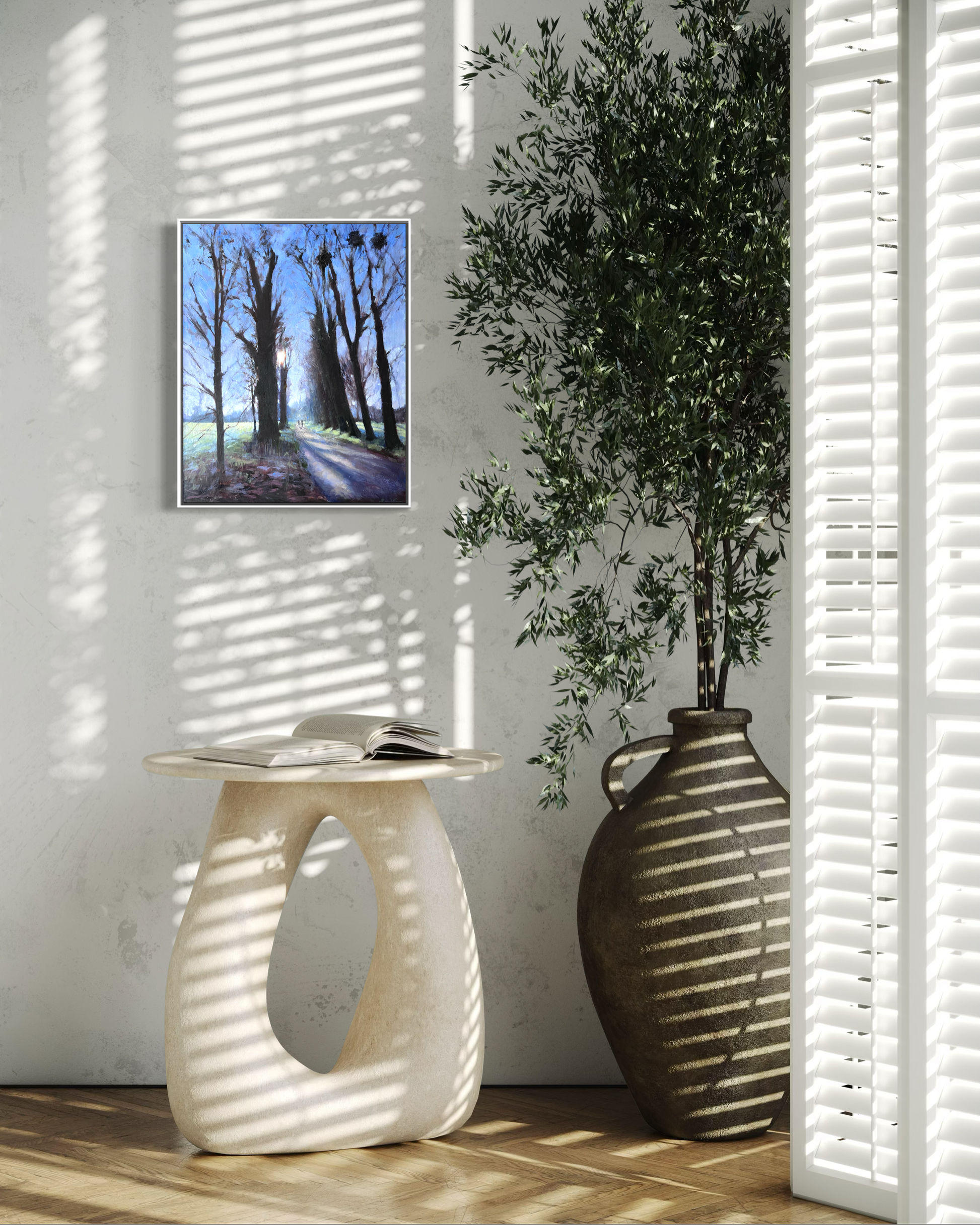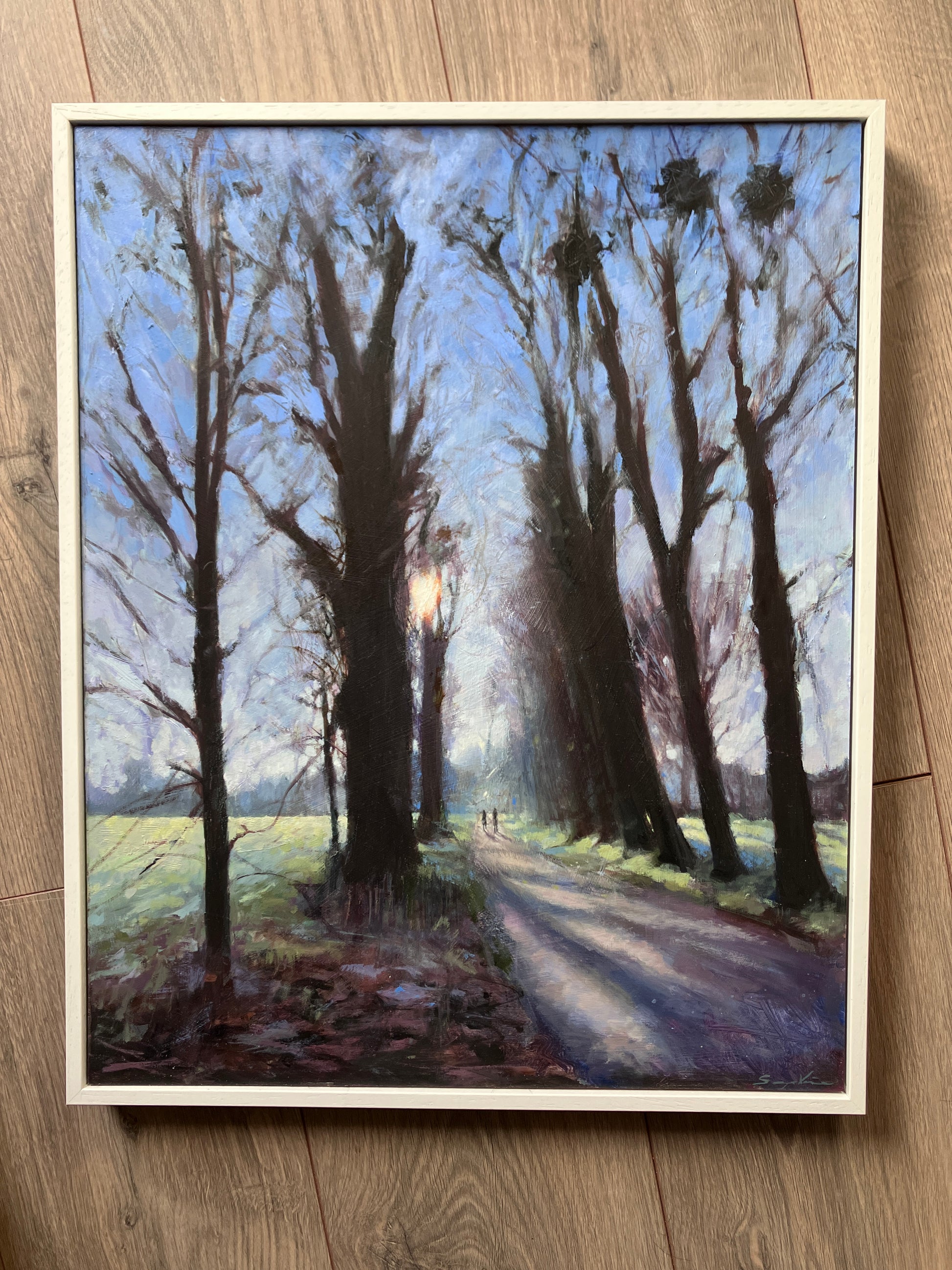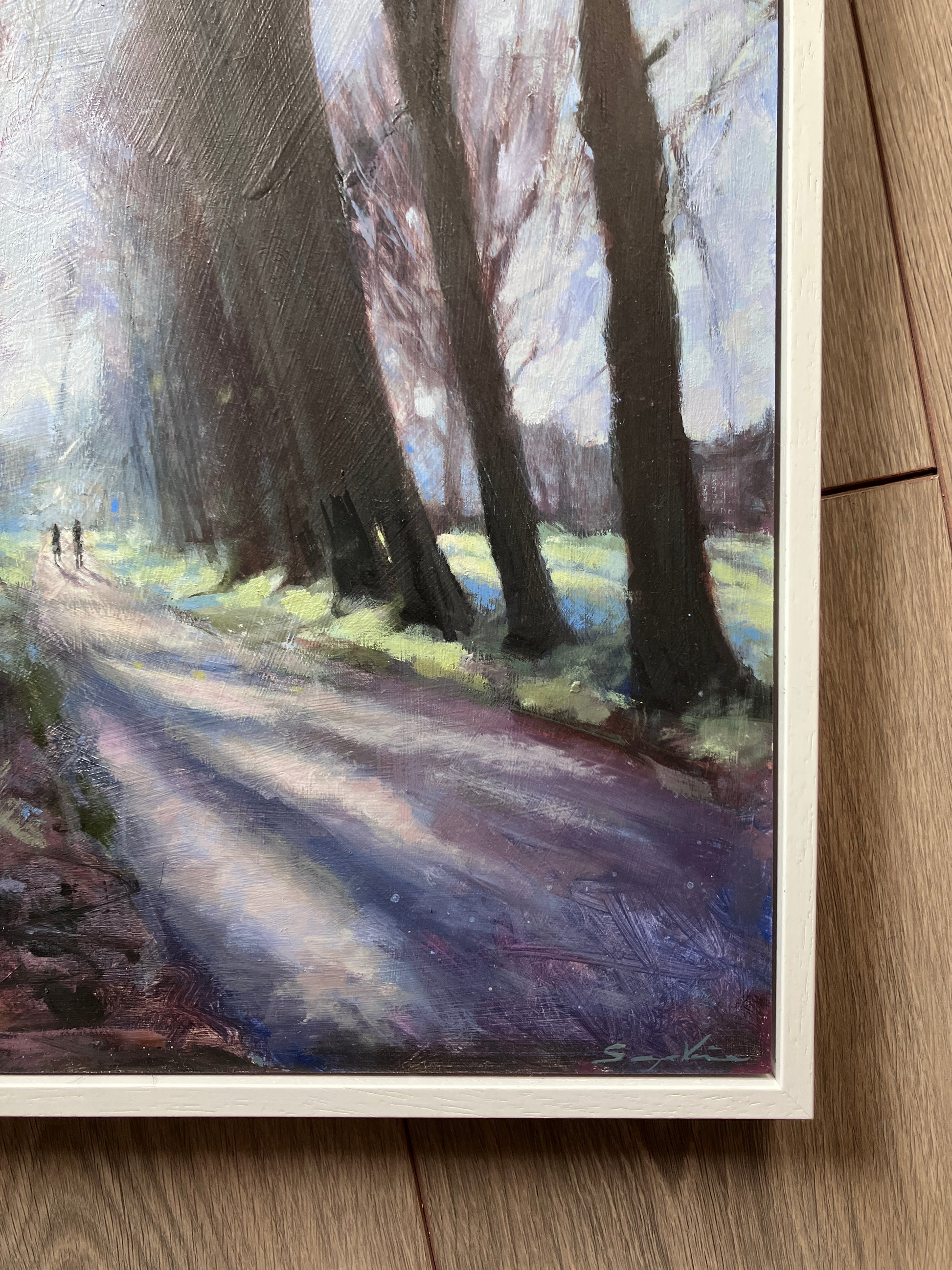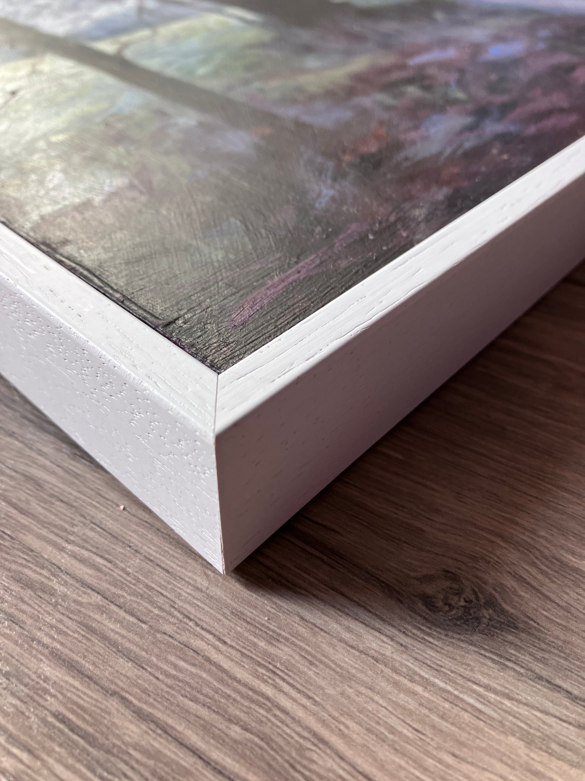 This is an original Sonya Vine painting, oil on board, 20" x 16". Signed by the artist on the front and signed and dated on the back. This comes in a white wooden floater frame so it is ready to hang.