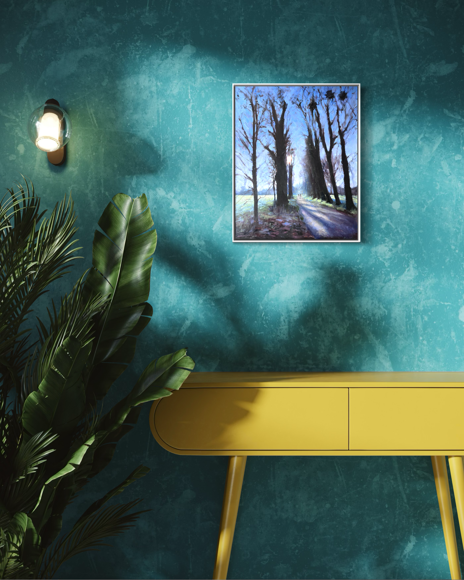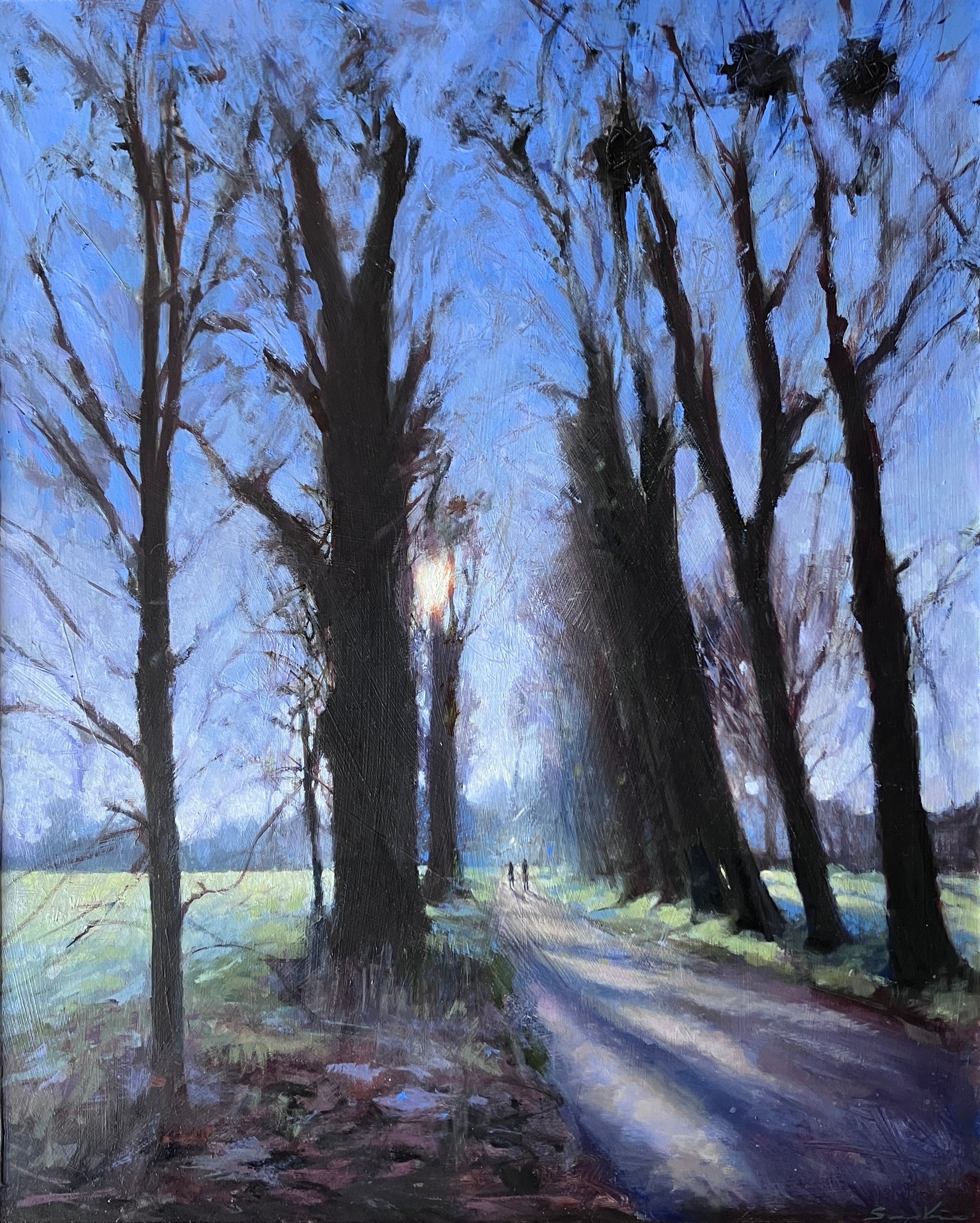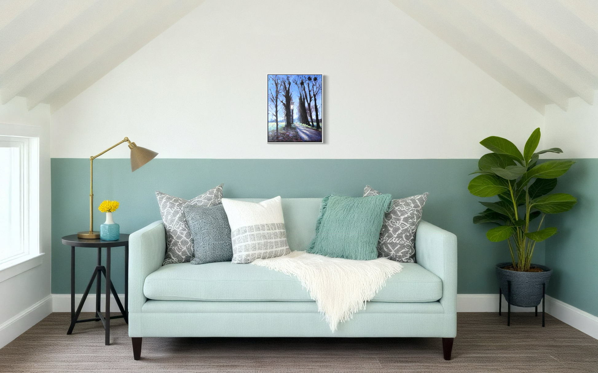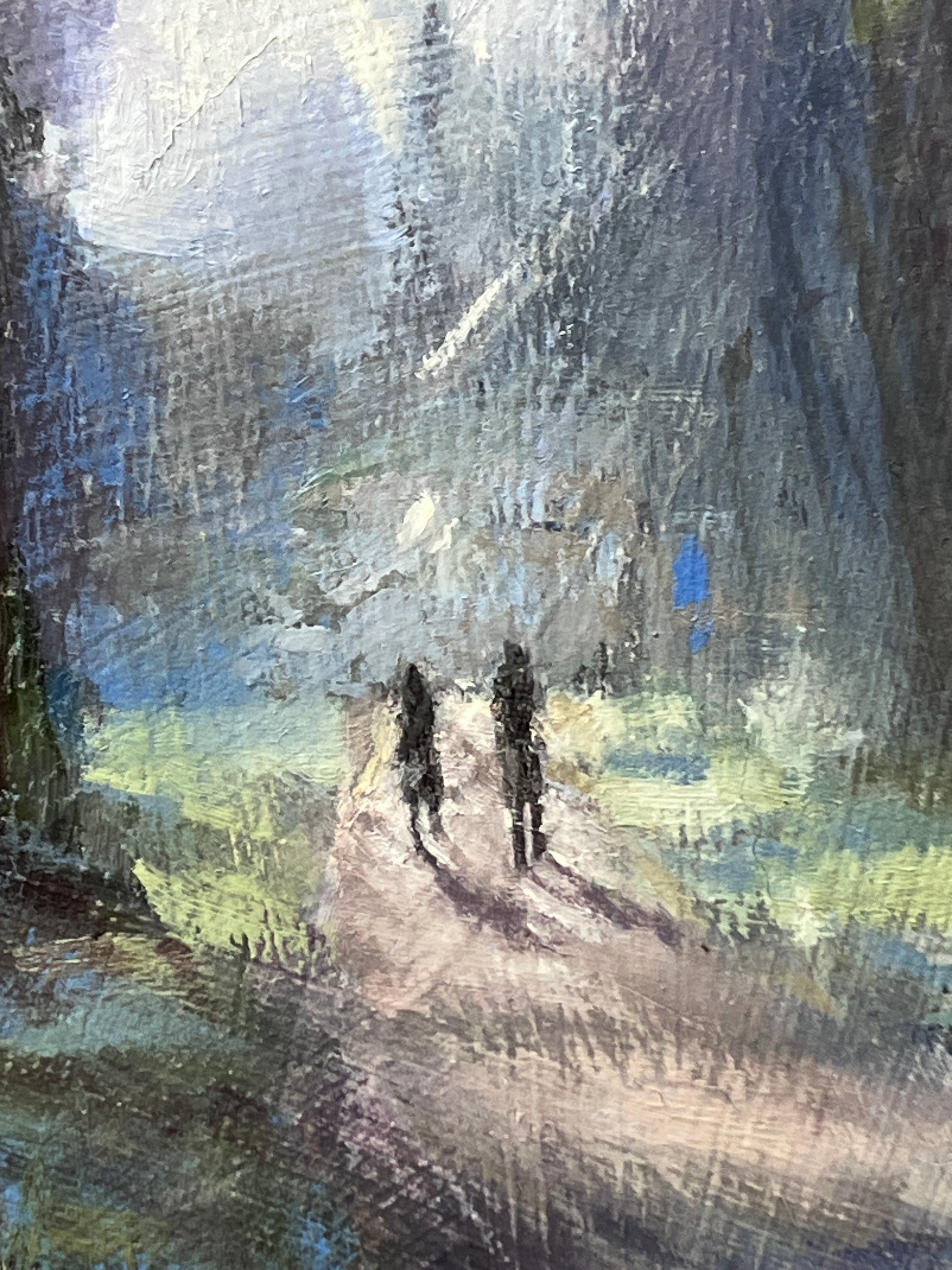 This is an original Sonya Vine painting, oil on board, 20" x 16". Signed by the artist on the front and signed and dated on the back. This comes in a white wooden floater frame so it is ready to hang.