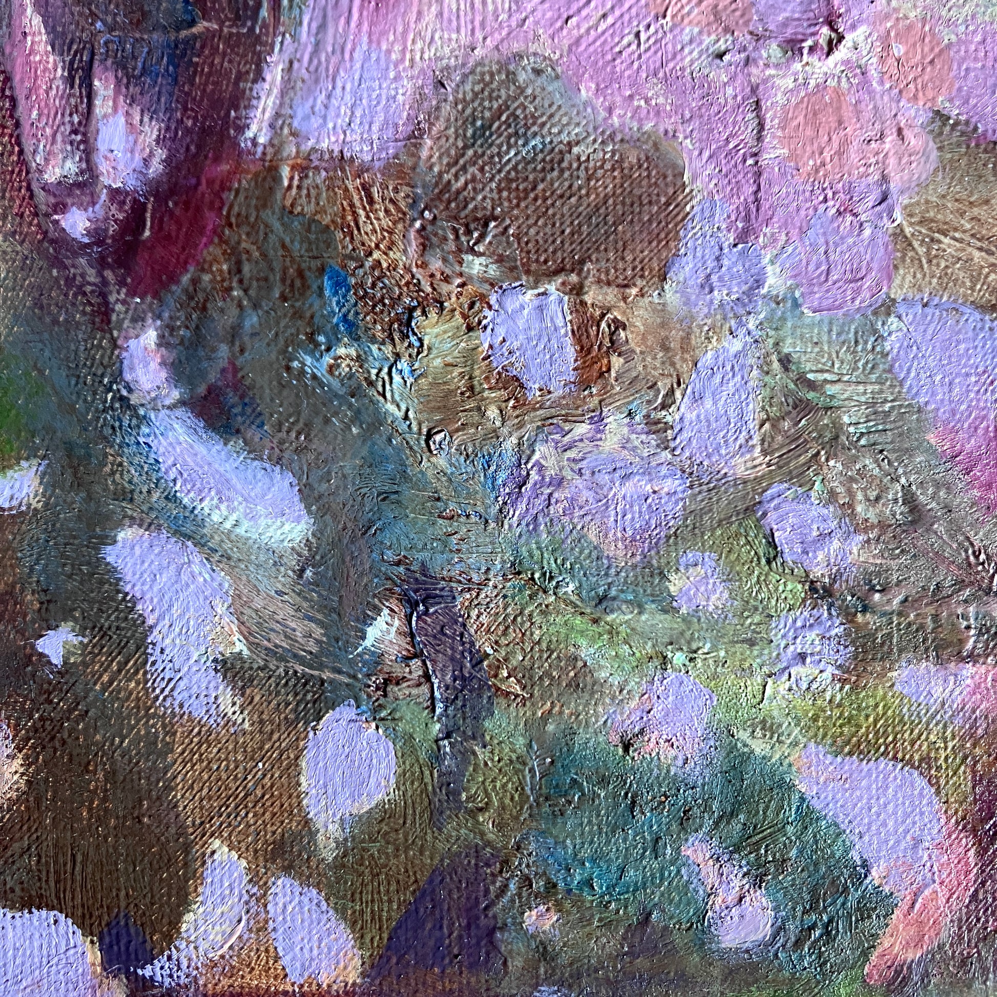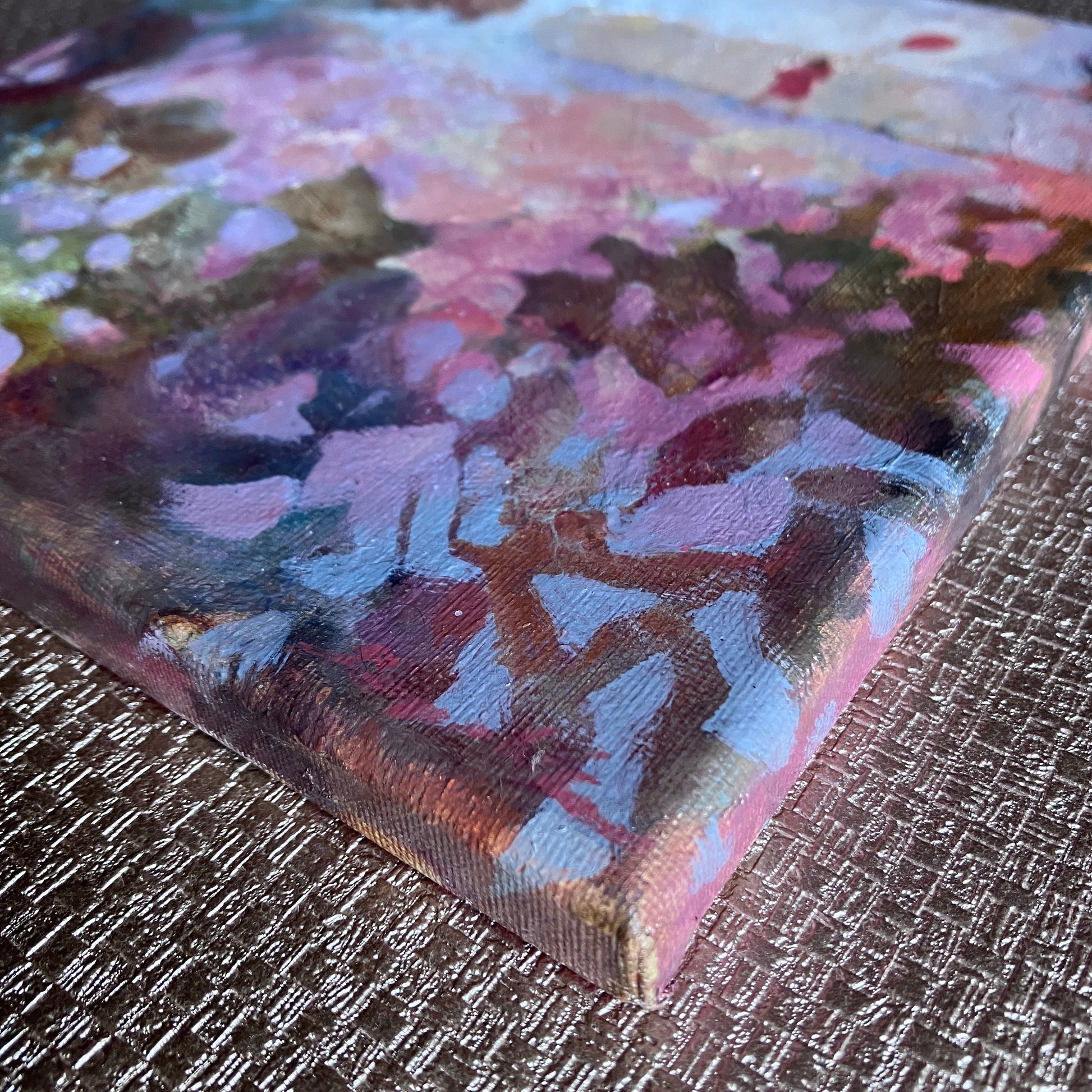 This is an original Sonya Vine painting, oil on canvas, 6" x 6". Signed by the artist on the front and signed and dated on the back. This is unframed but on stretched canvas (0.5" deep) and can hang on the wall as it is.