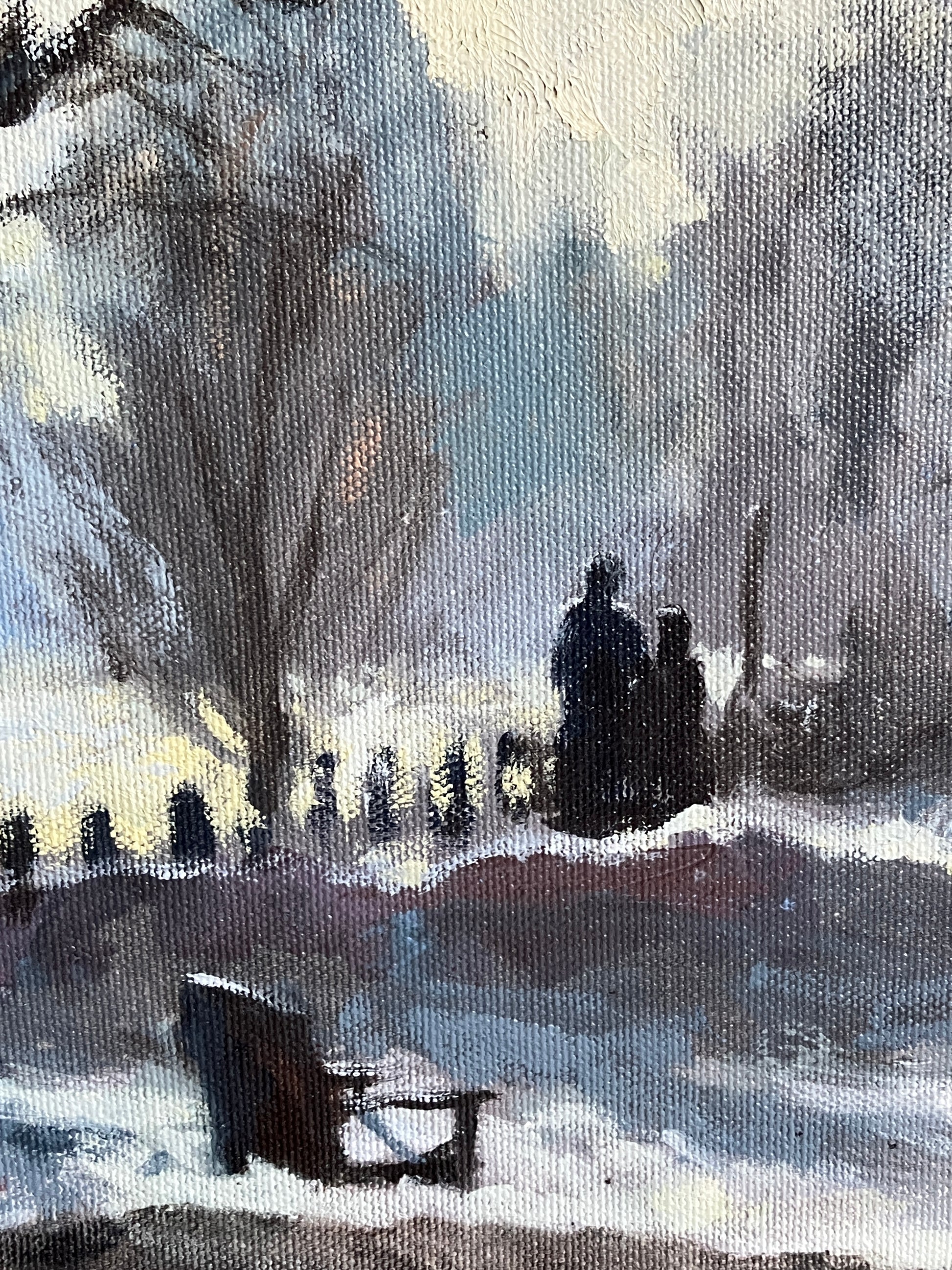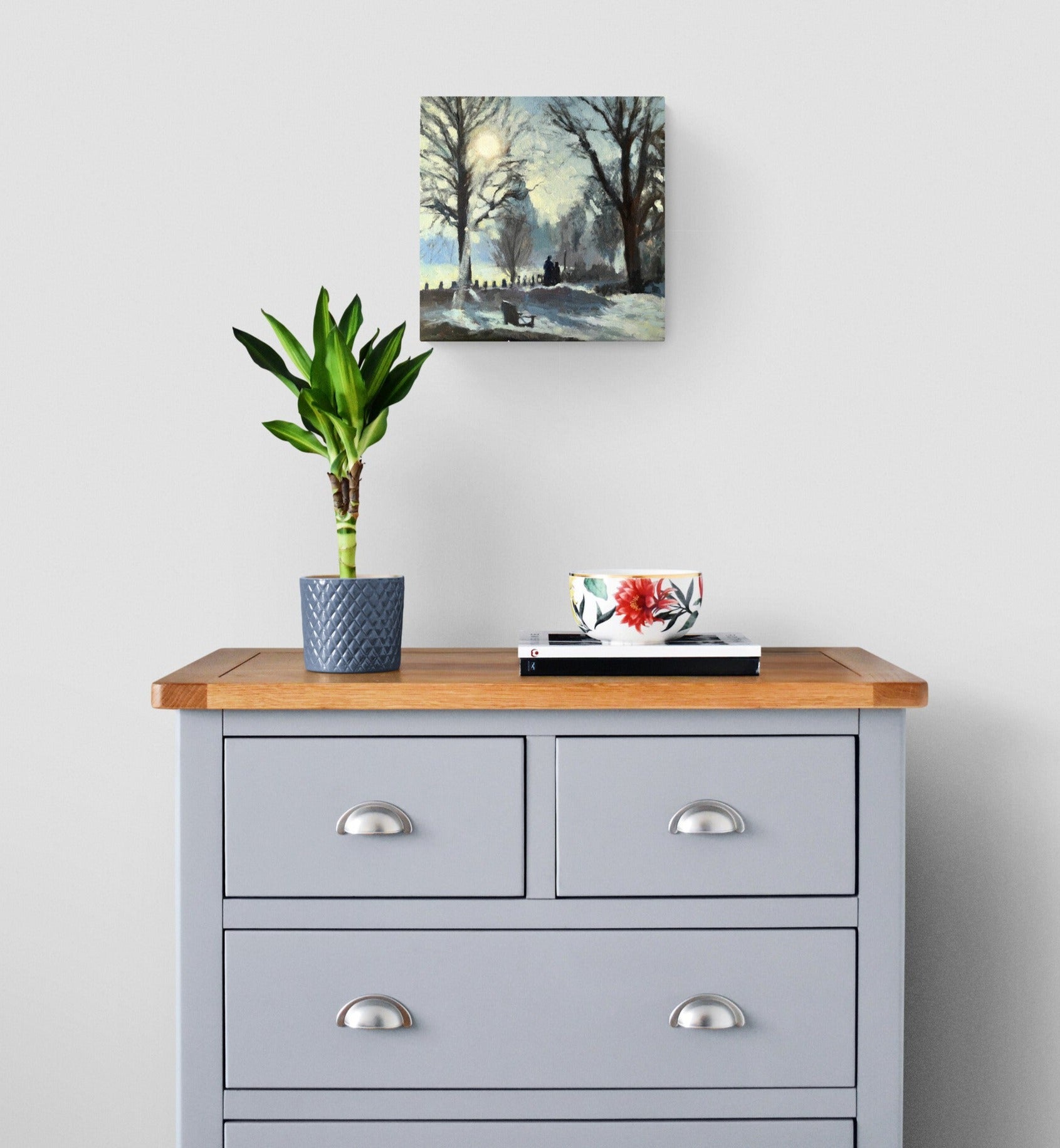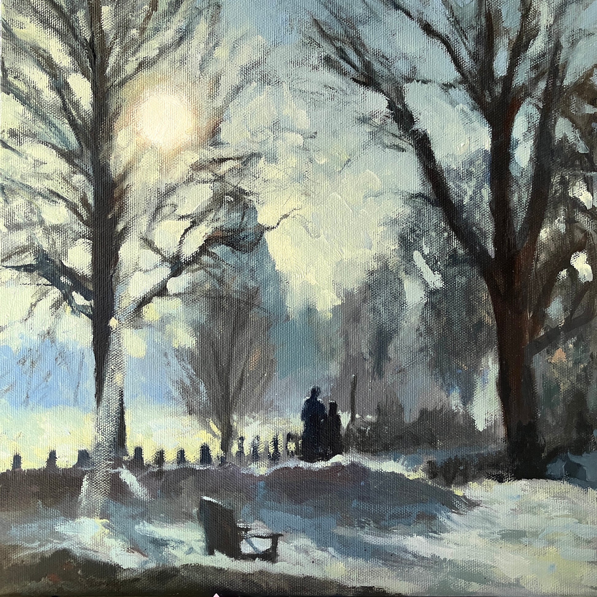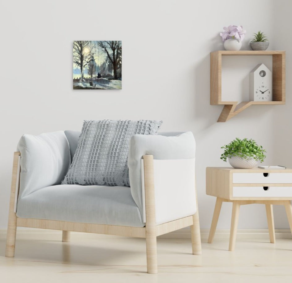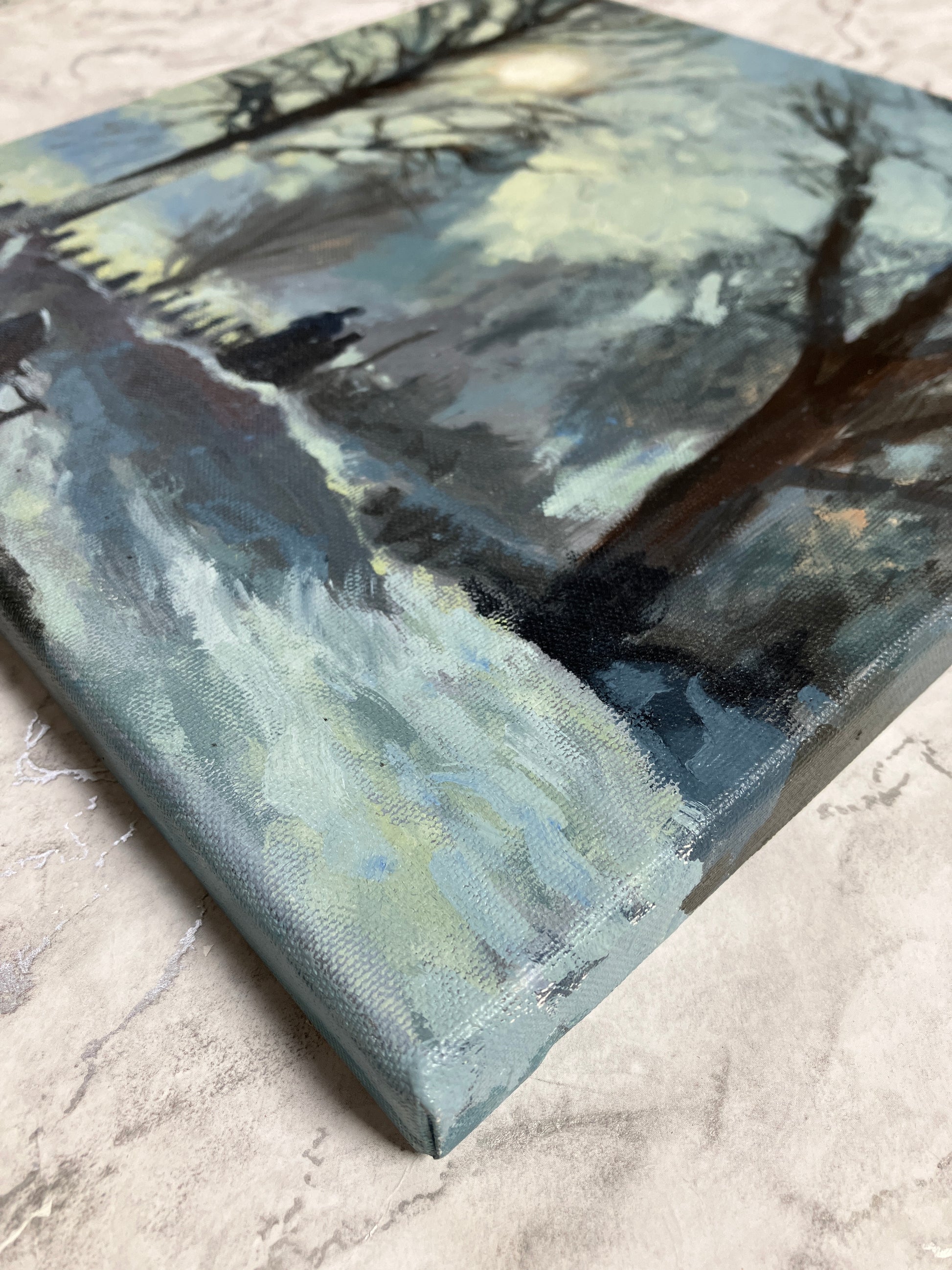 This is an original Sonya Vine painting, oil on canvas, 12" x 12". Signed by the artist on the front and signed and dated on the back. No need to frame as it is on stretched canvas (1.5" deep) and can hang on the wall as it is.