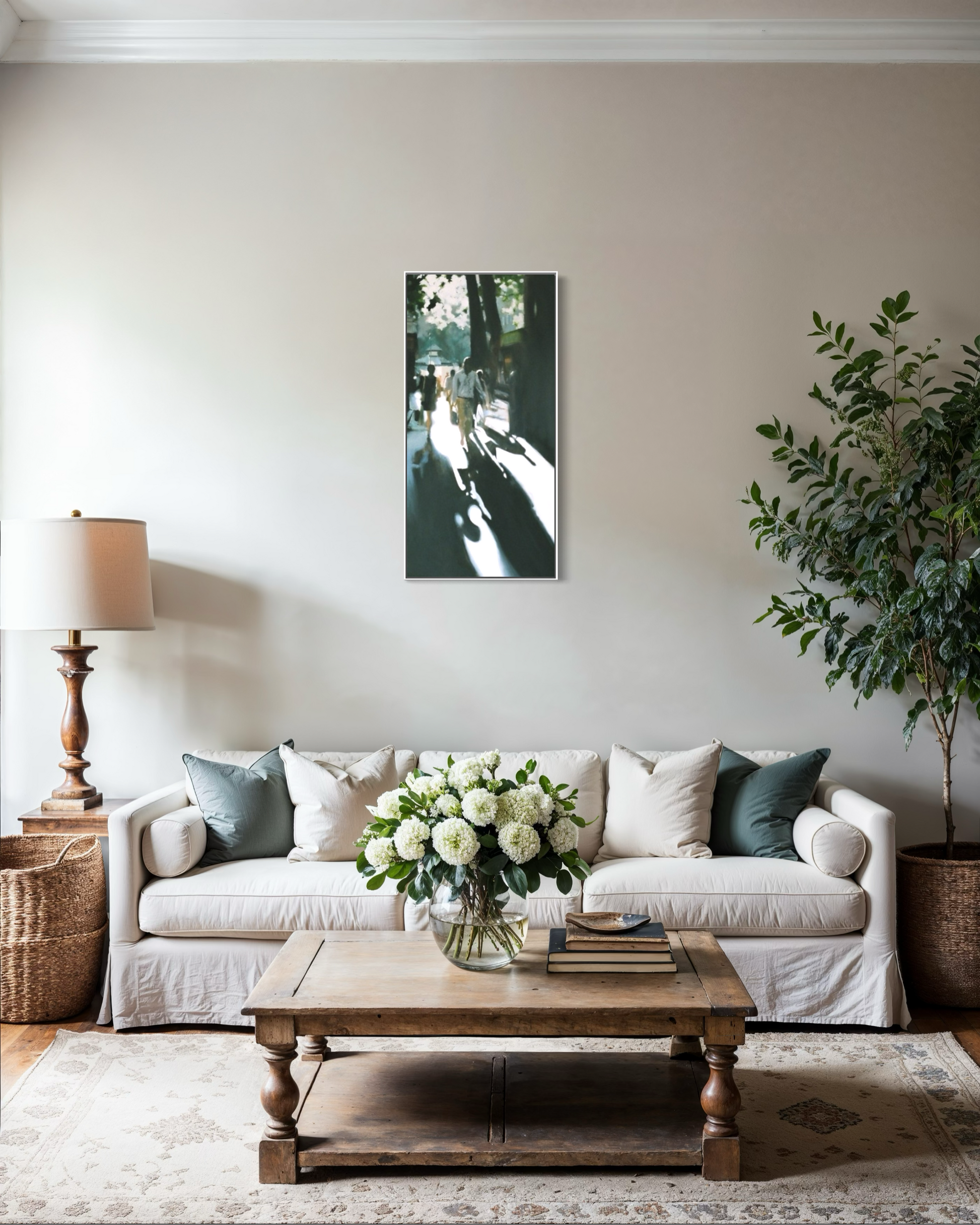 Inspired by a view looking down a little lane towards Leicester Square on a bright, sunny day.