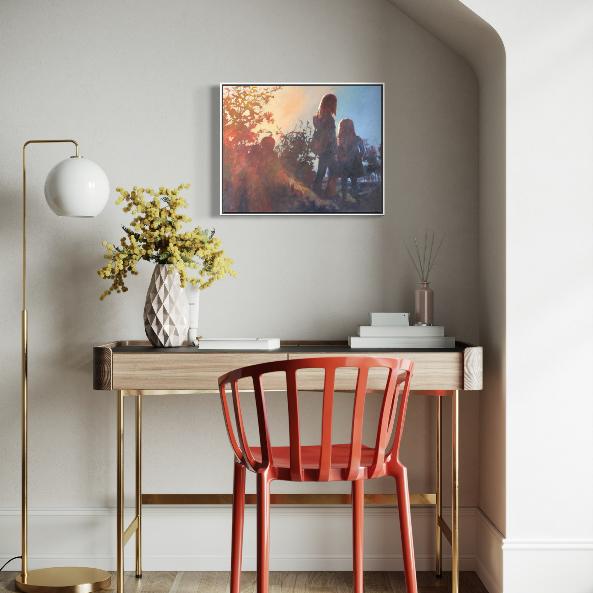 This is an original Sonya Vine painting, oil on canvas, 16" x 20". Signed by the artist on the front and signed and dated on the back.