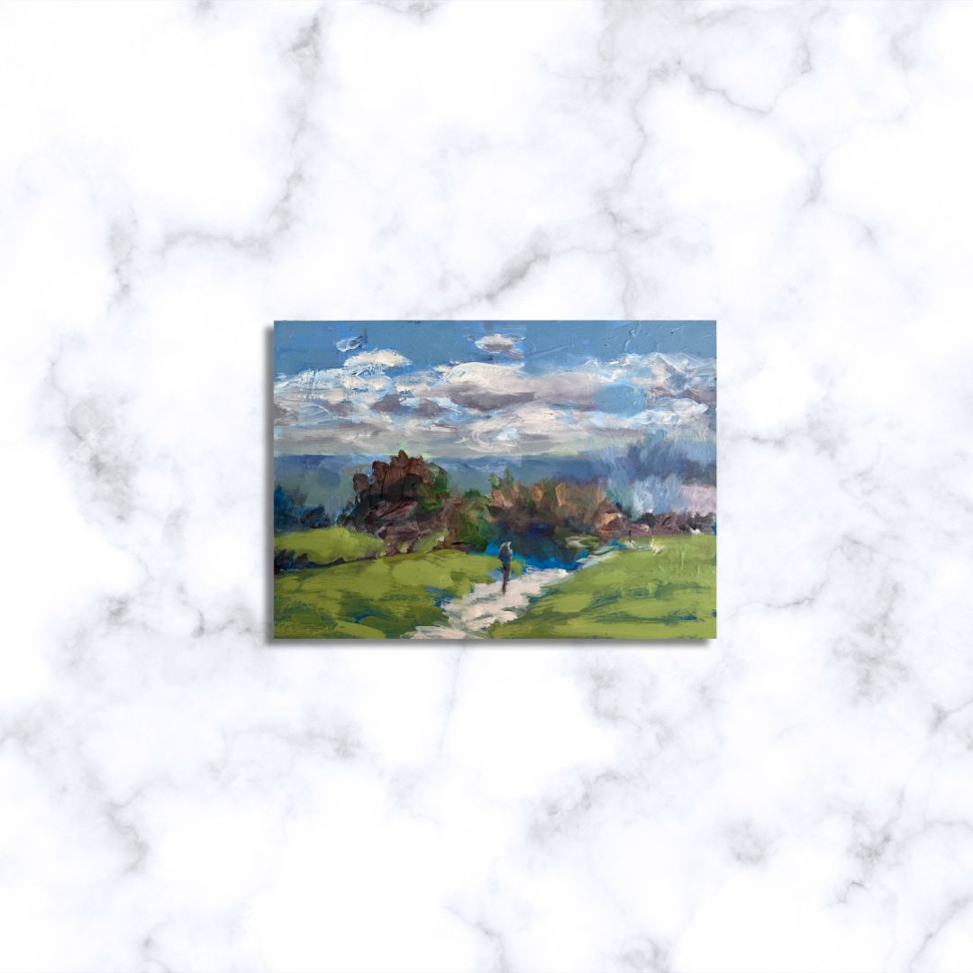 This is an original Sonya Vine painting, acrylic on board, 5"x7" and is signed and dated by the artist on the back.