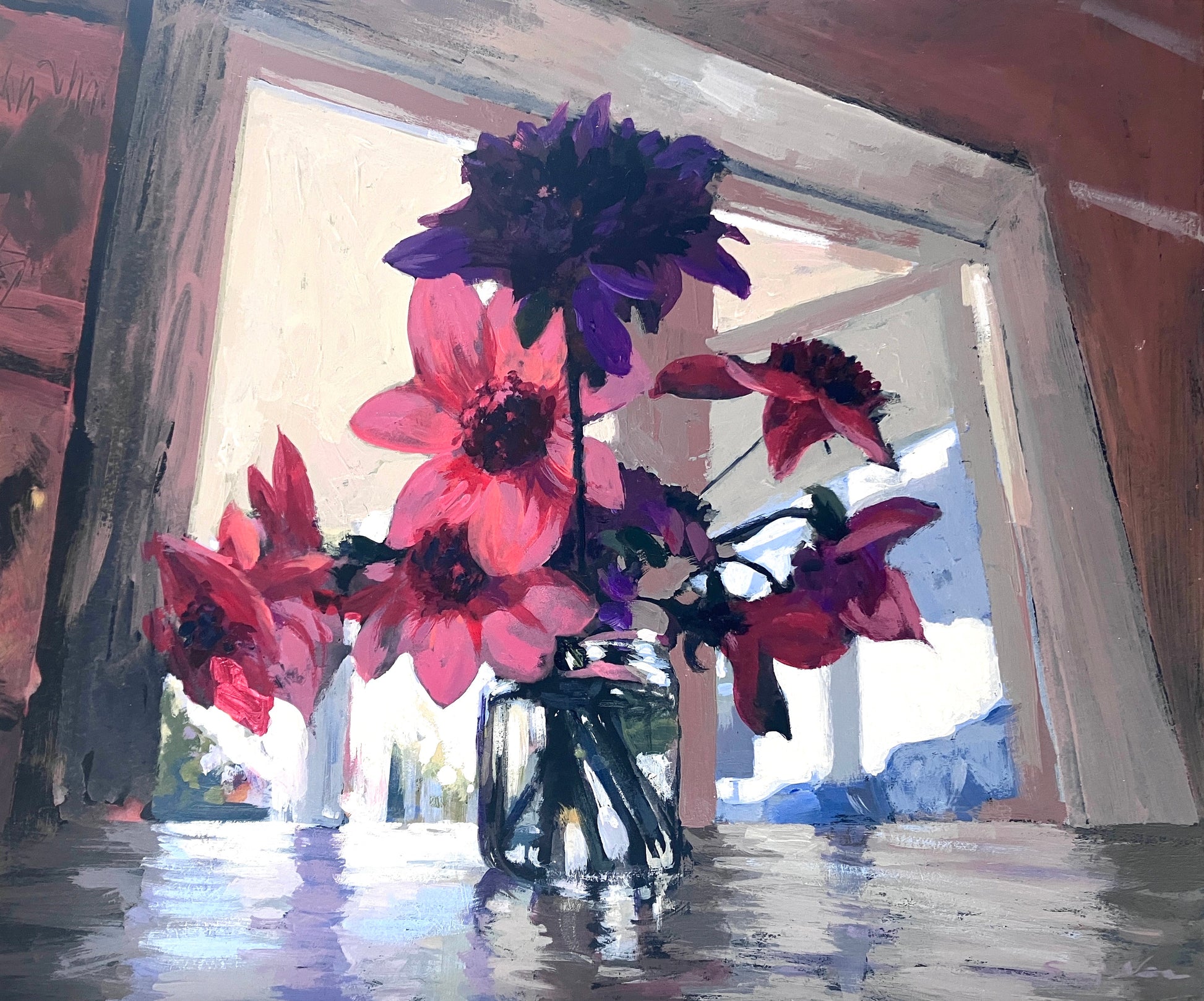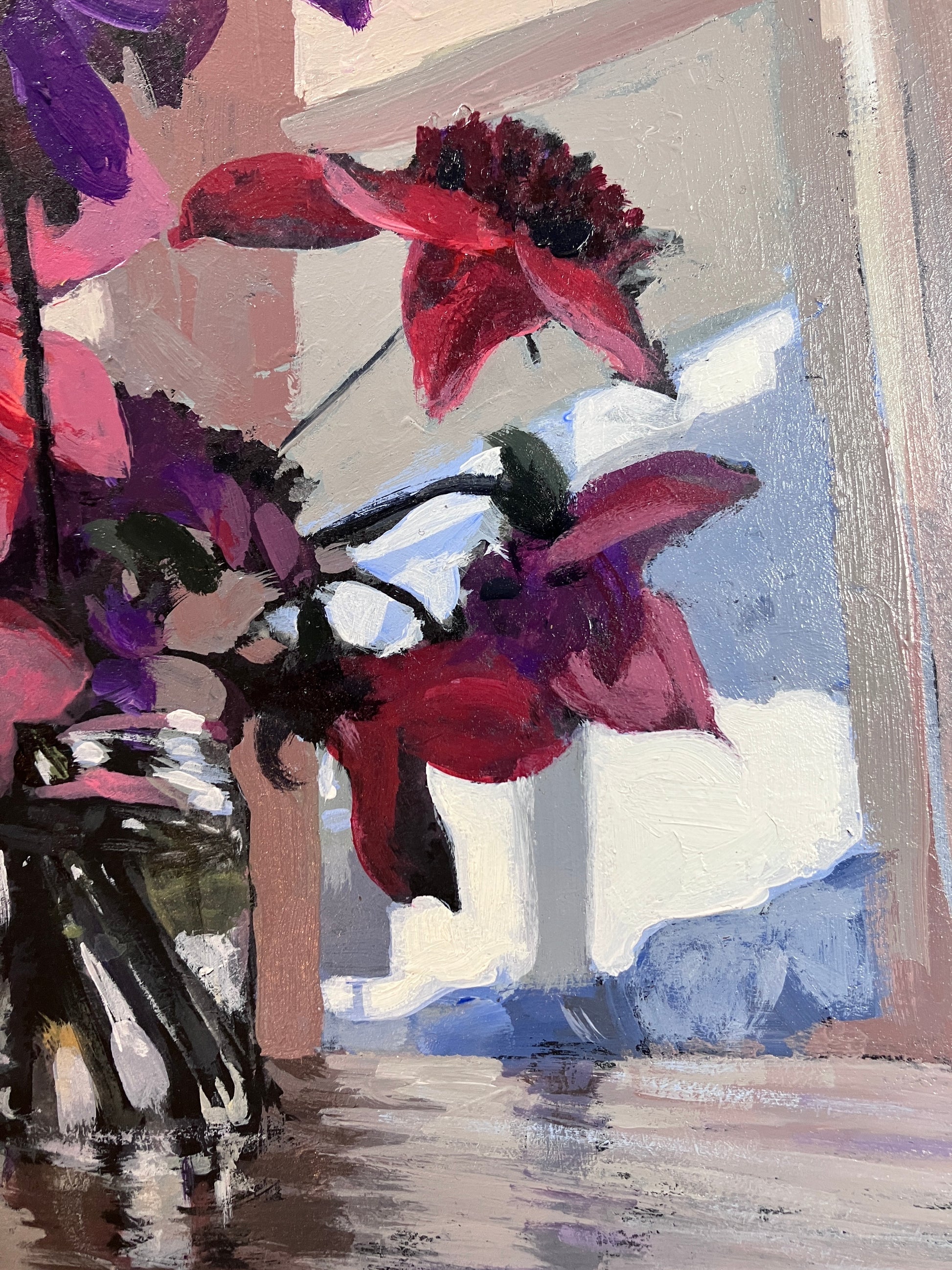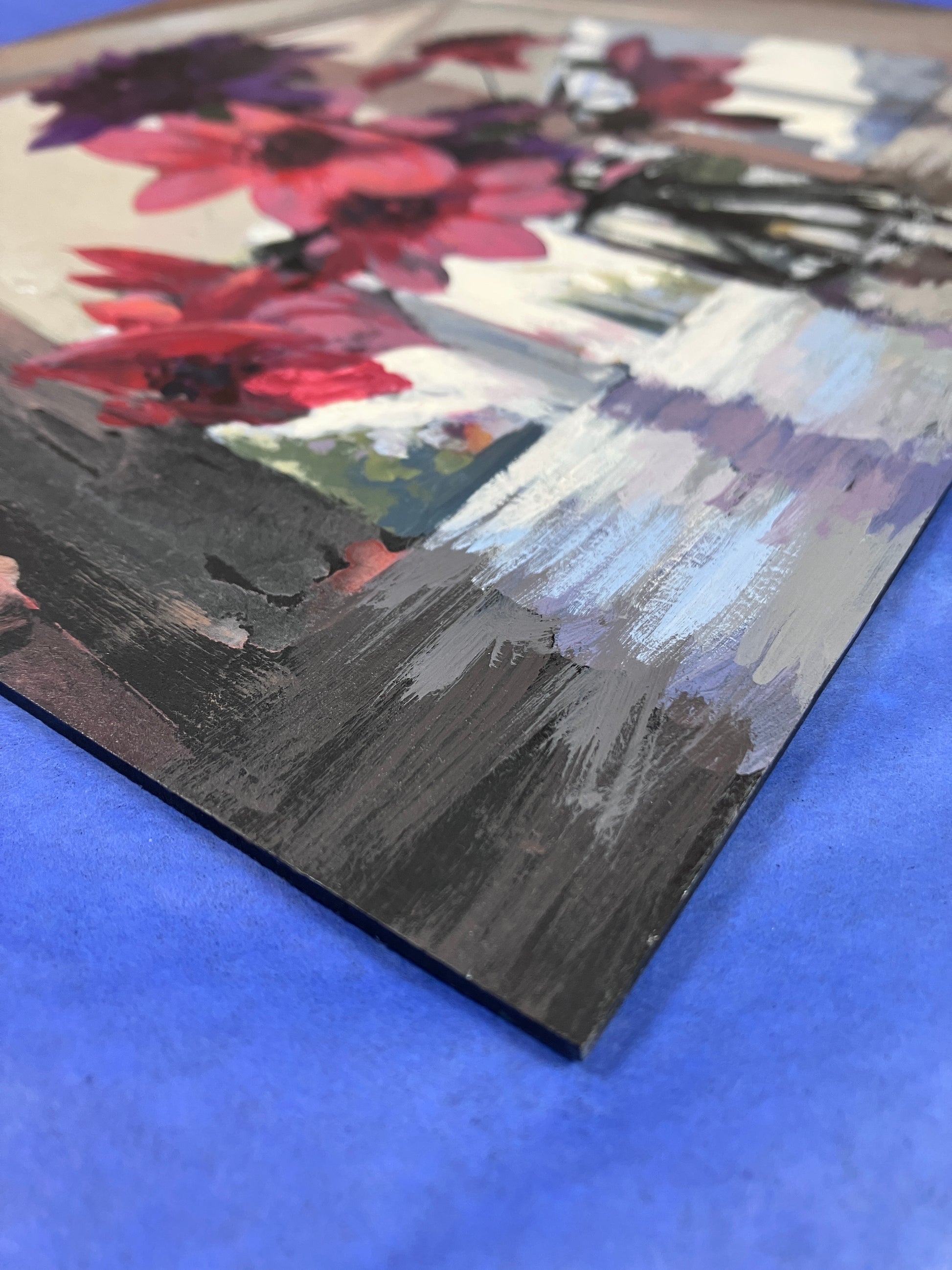 This is an original Sonya Vine painting, oil on board, 10"x12". Signed and dated by the artist on the back, and signed on one corner on the front.