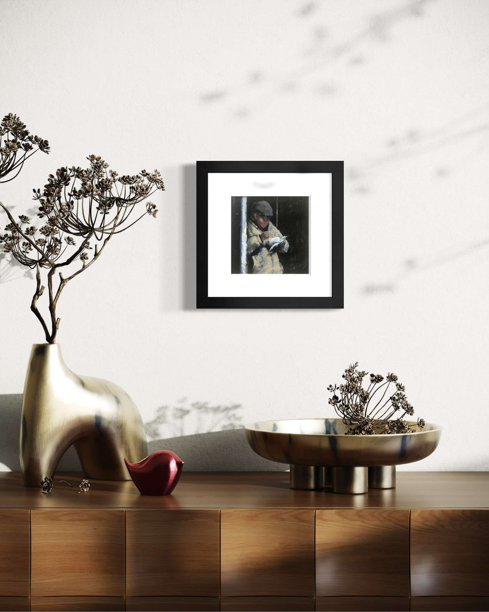 It comes in an off-white mount that will fit an 8" x 8" frame - please note that the frame is not included so you are able to choose a frame that is perfect for your decor. This also allows me to keep shipping costs free around the world, yippee!