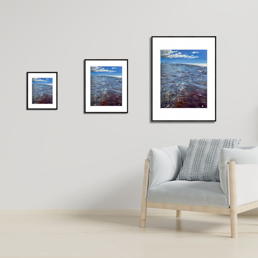 Limited edition giclée archival paper print. Printed on high grade Hahnemühle German etching lightly textured paper with a small border. This is a limited edition of 50 with the number and artist signature in the corner. There are three sizes and the option to have print only or in a black or white frame. See last image showing details of measurements.