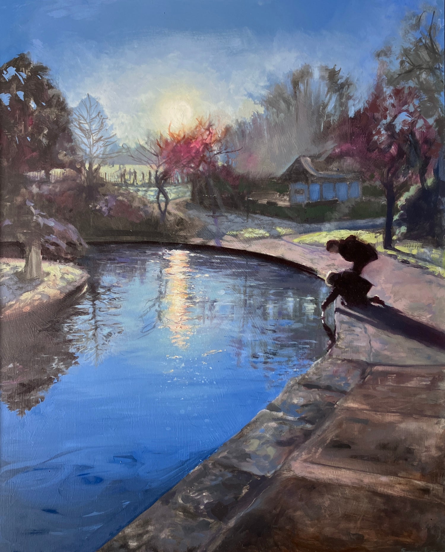 "Light plays a central role in my work. I’m drawn to the way it can transform a simple scene and evoke something deeper—often a quiet sense of hope within darkness. Figures appear frequently in my paintings, offering scale and a sense of story. I like to work loosely initially allowing mood and atmosphere to guide the painting."